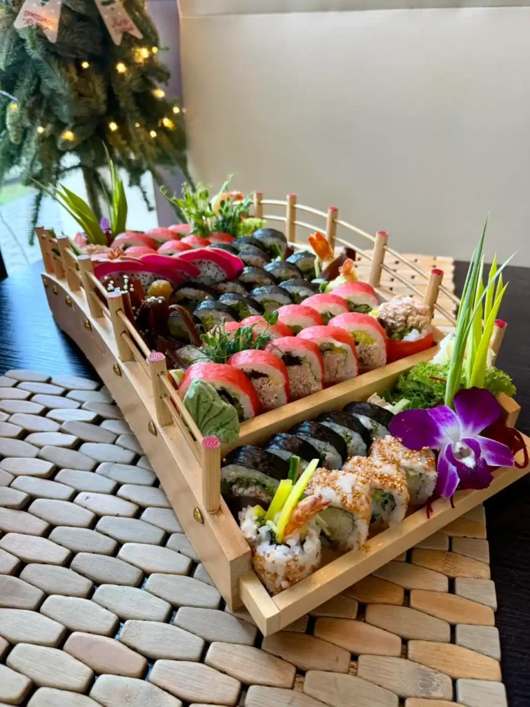 zgodnie z recepturą mogą zawierać ogórka, awokado, oshinko, kampyo, sałatę, sosy,majonez, serek philadelphia
